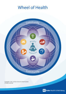 Yeah. Yeah. It’s I mean, it’s it’s any age. It’s it’s any age. You should should be thinking about this stuff. I’m going to show on the screen. And if you’re listening on, um, if you’re listening on Spotify or Apple Hop over to our YouTube channel, uh, because we have some visuals here. You have this called The Wheel of Health. I’ll I’ll show it up here. And this is the point of the wheel. Can do it. The wheel of health I like wheels. All different type of wheels. I’m a big fan of wheels. Um, so you have community. There’s in the middle is you write mindful awareness and then all these things that you’re talking about, sleep and rest, physical activity, um, the environment that you’re in, all of these. Talk to me about this. Like how does this play into everything?